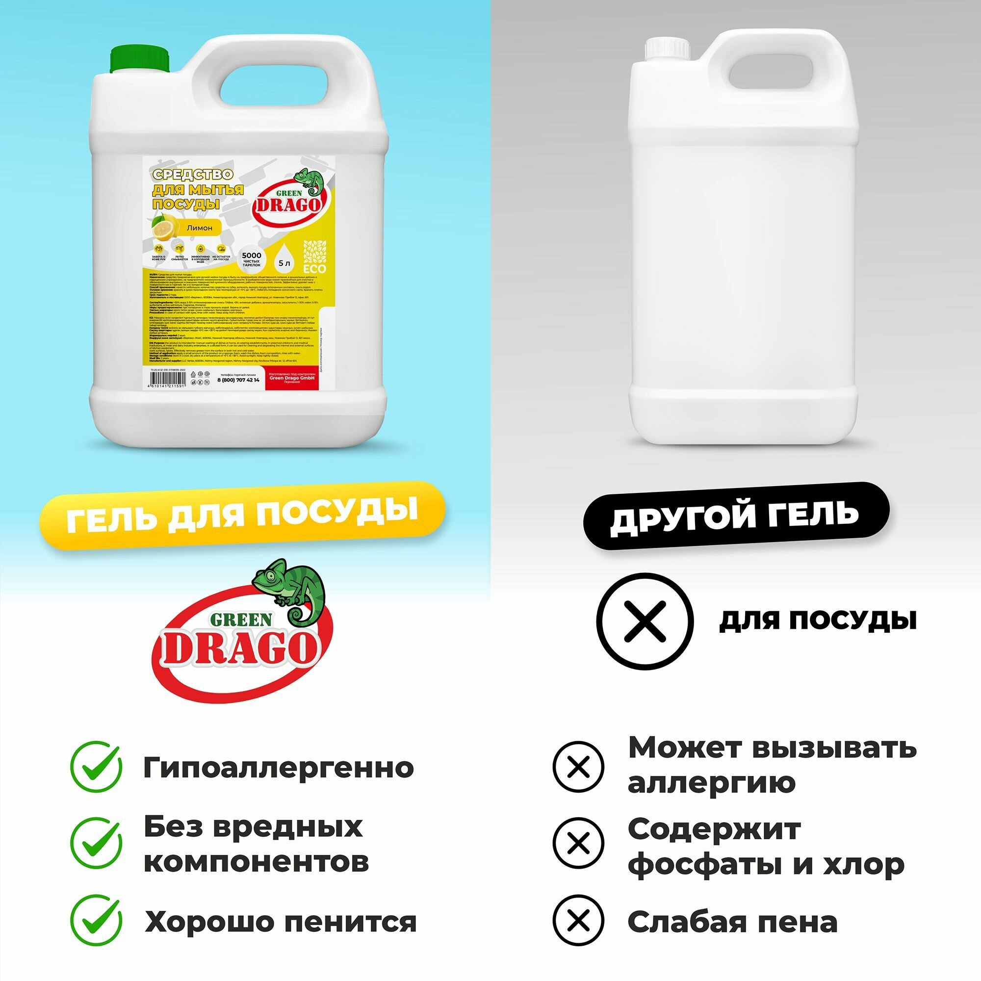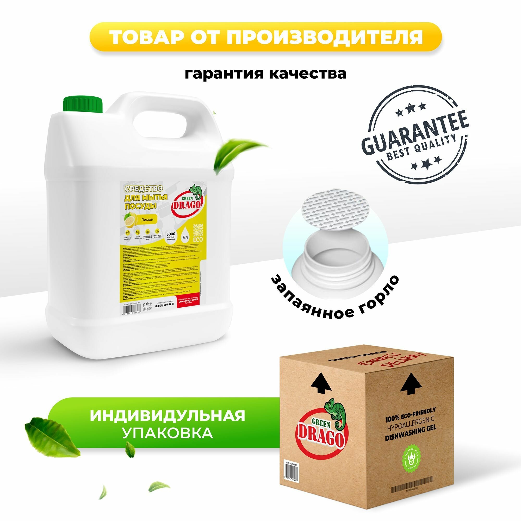 Средство для мытья посуды эко гель 5л с ароматом Лимона Green Drago