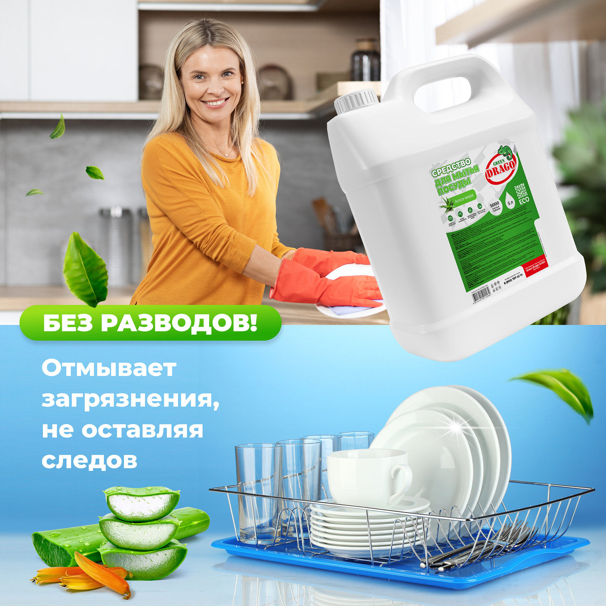 Средство для мытья посуды эко гель 5л с ароматом Алоэ Вера Green Drago интересное: