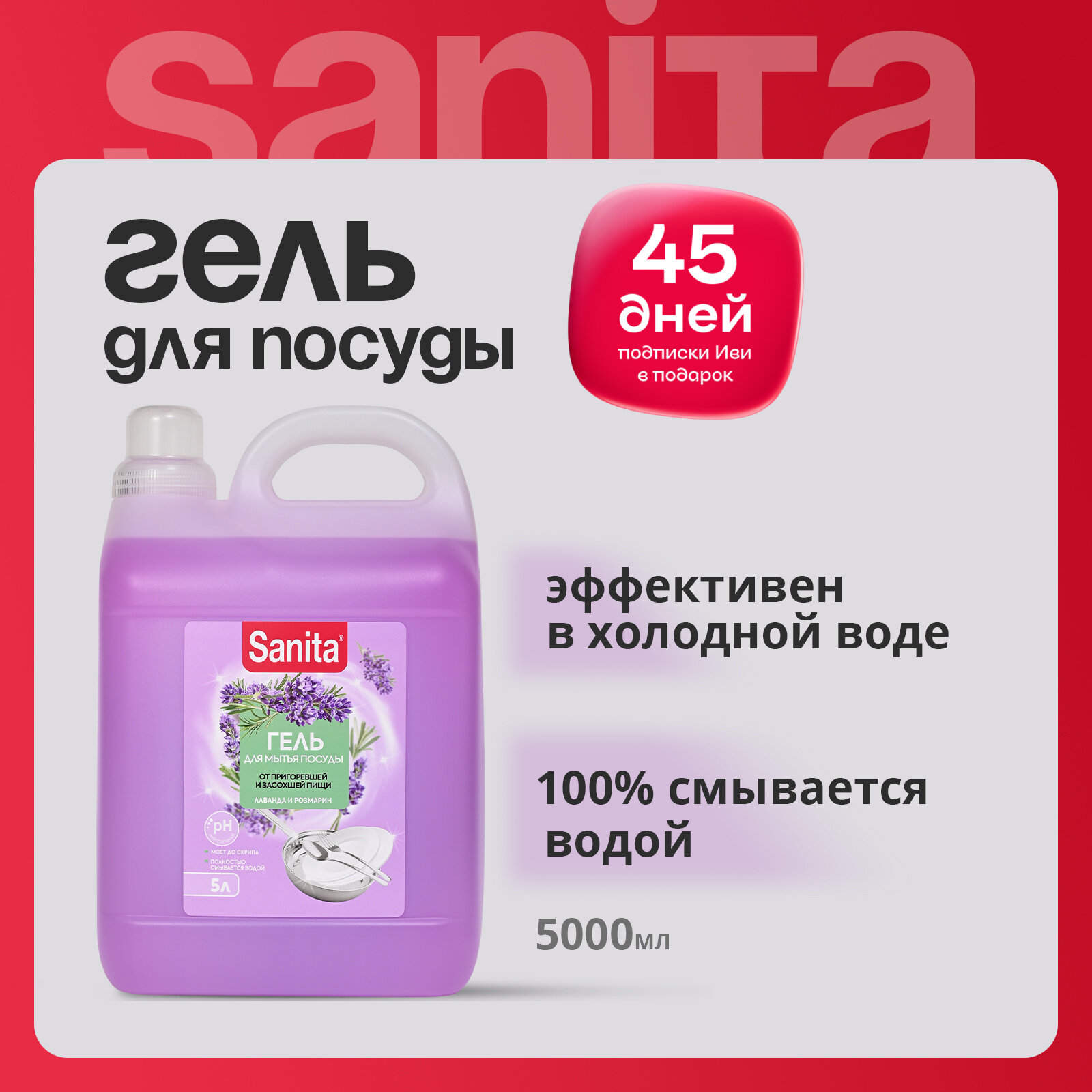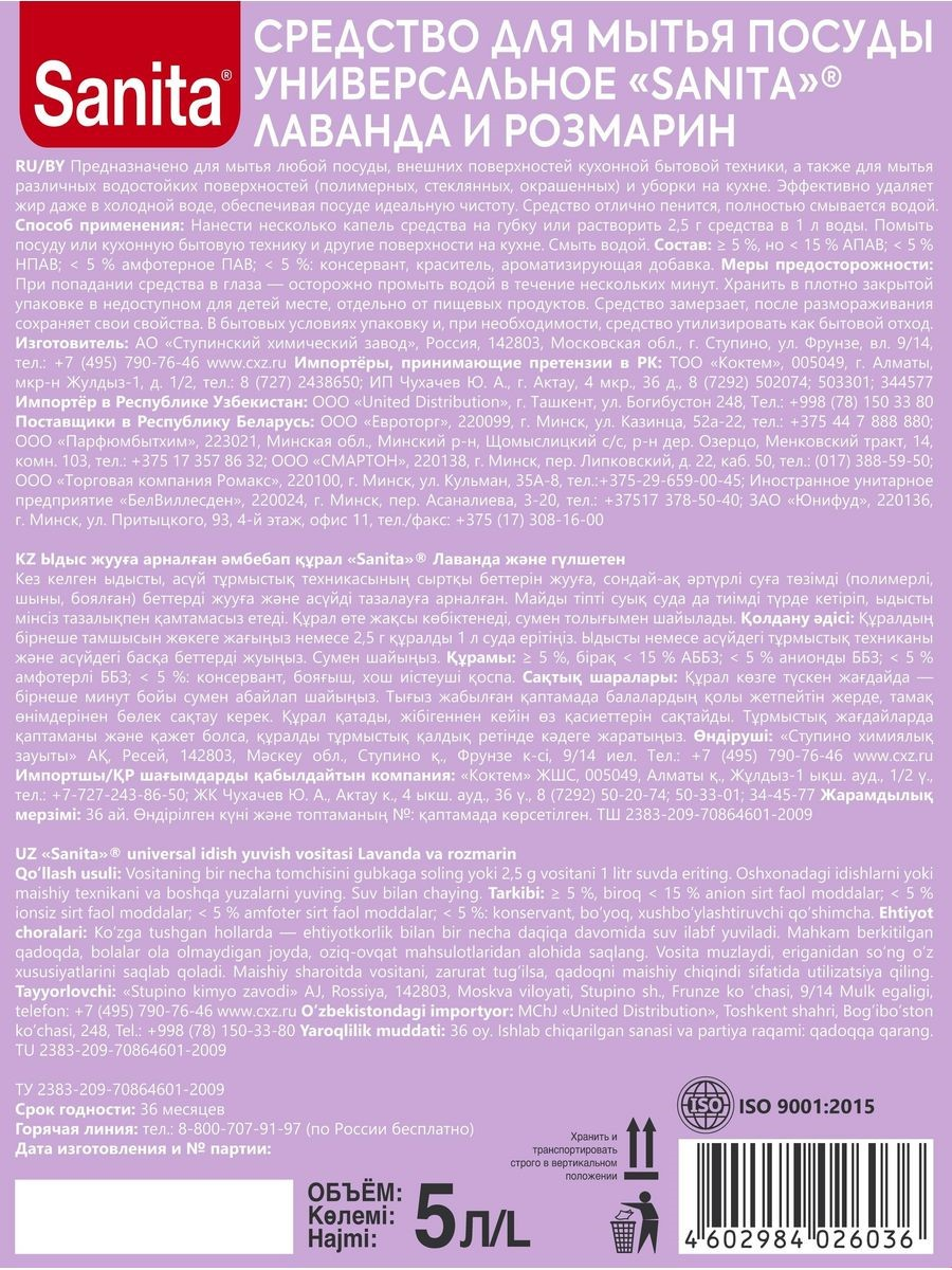 Купить Sanita Средство для мытья посуды от засохшей пищи и жира, Лаванда и розмарин, 5 л