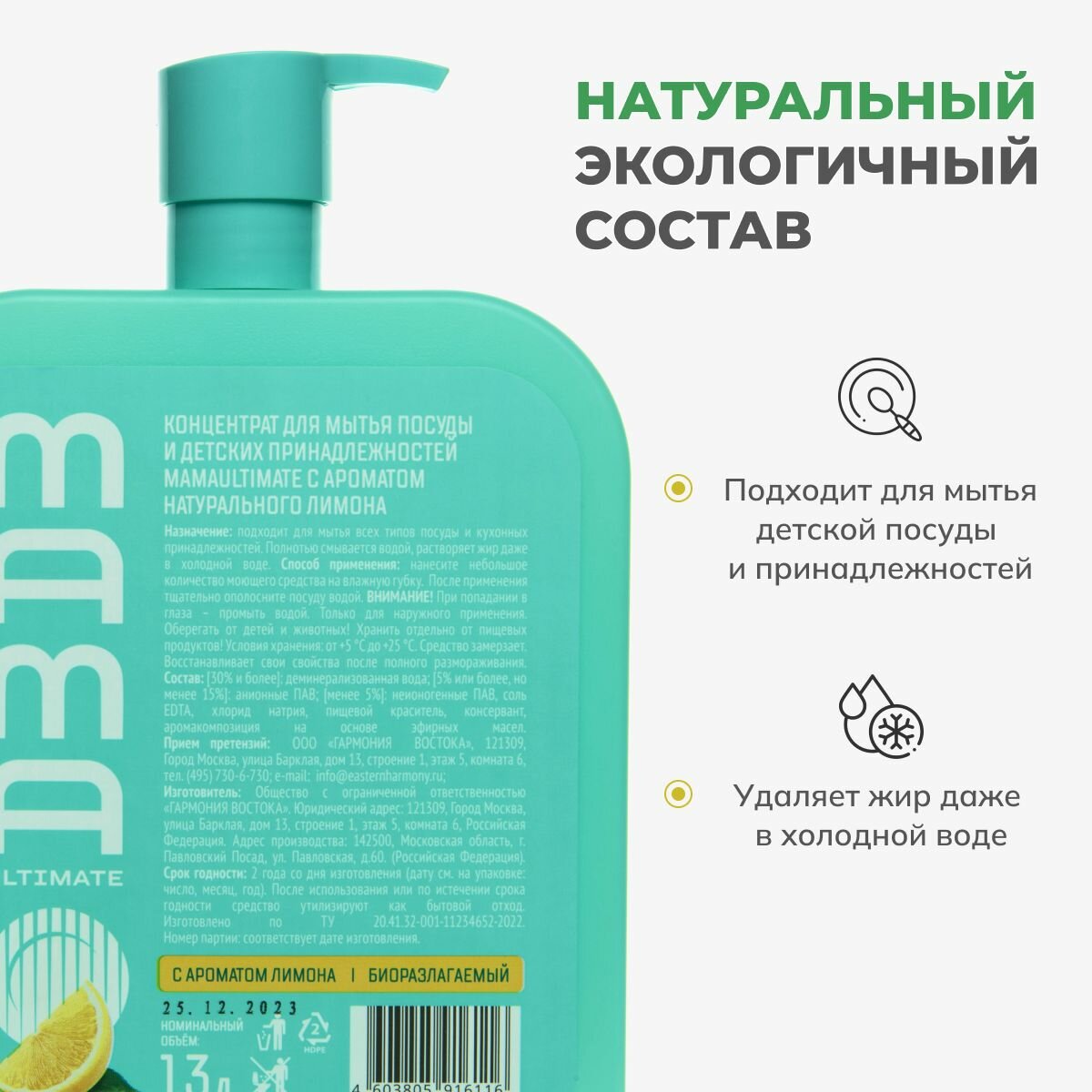 Купить Средство для мытья посуды и детских принадлежностей концентрат Mama Ultimate с ароматом лимона, 1,3 л