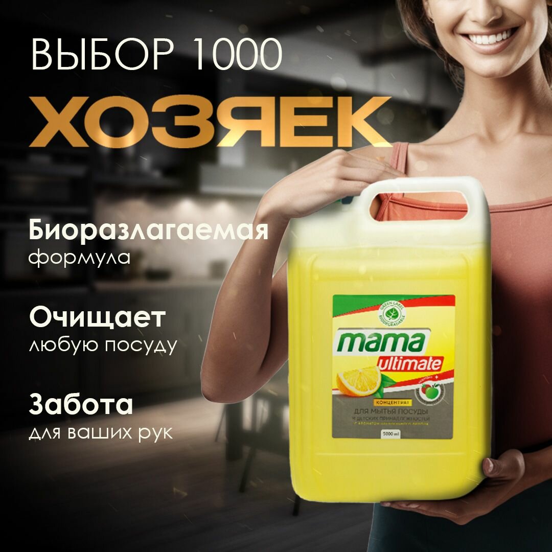 Средство для мытья посуды и детских принадлежностей концентрат Mama Ultimate с ароматом лимона, 5 л