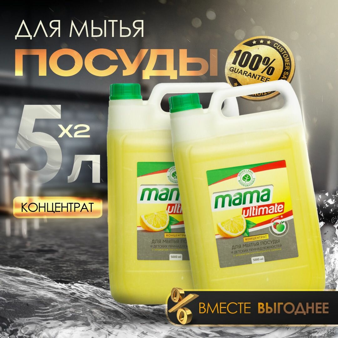 Набор Средство для мытья посуды биоразлагаемое, концентрат, для мытья детских игрушек Mama Ultimate, с ароматом лимона 5 л, 2 шт
