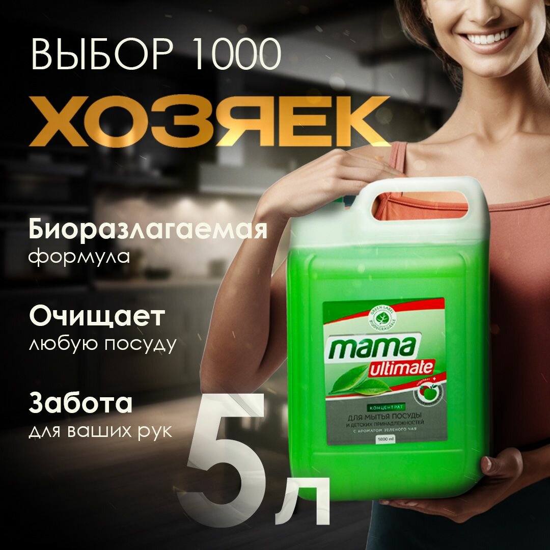 Средство для мытья посуды и детских принадлежностей концентрат Mama Ultimate с ароматом зеленого чая, 1,3 л
