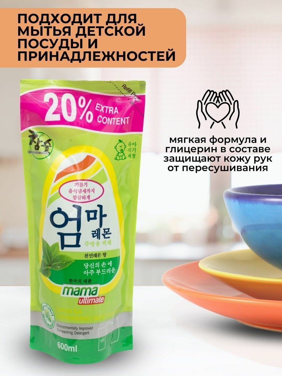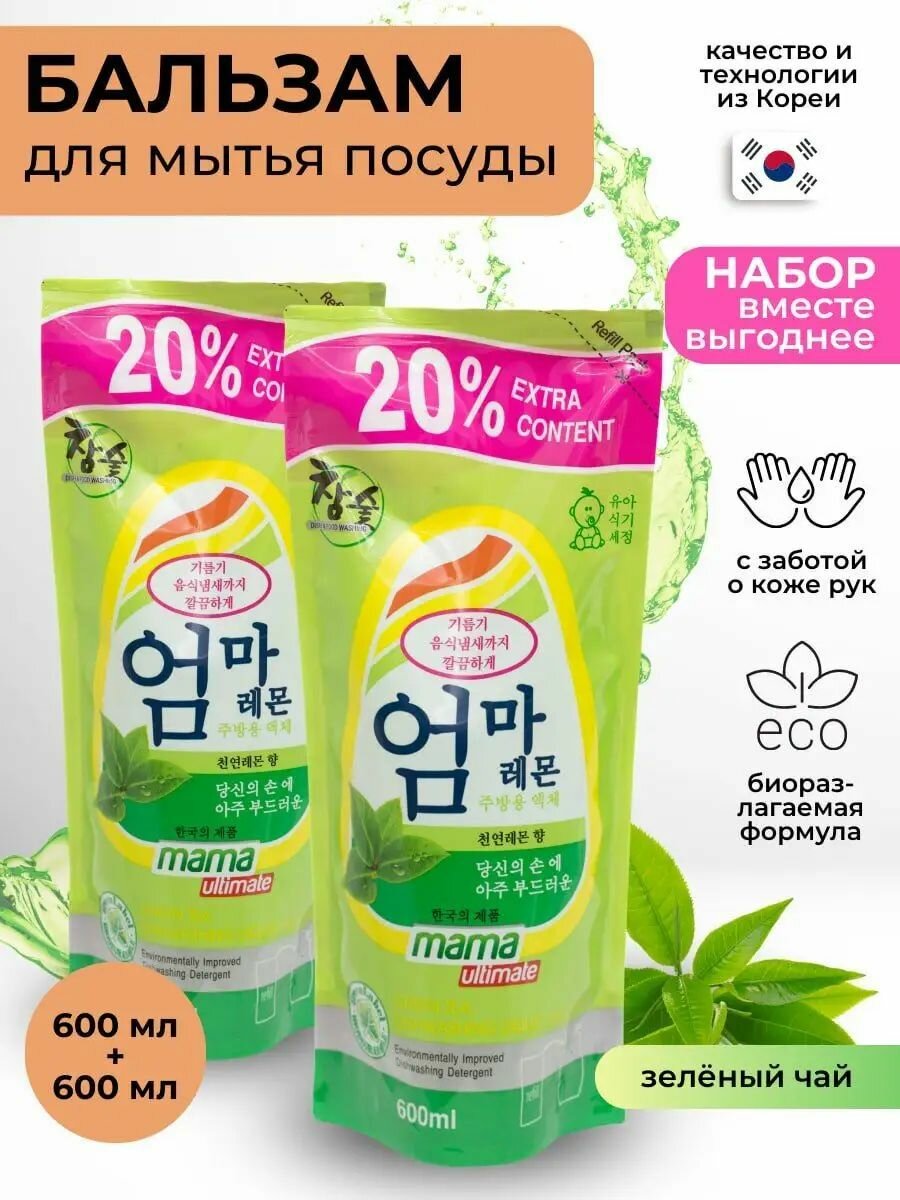 Набор Средство бальзам для мытья посуды Mama Ultimate 600 мл, с ароматом зеленого чая, 2 шт интересное:
