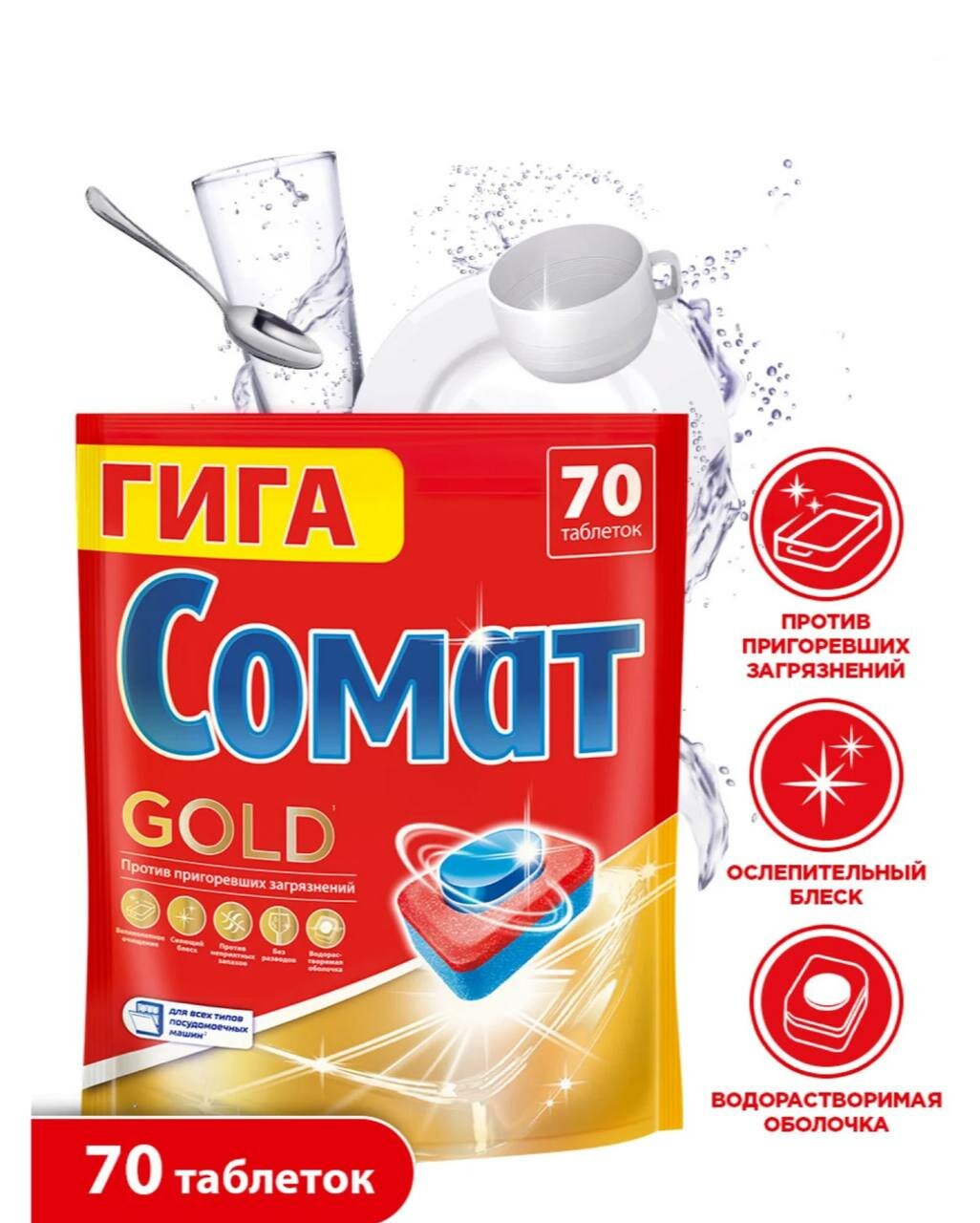 Сомат Gold таблетки для посудомоечной машины, 70 шт