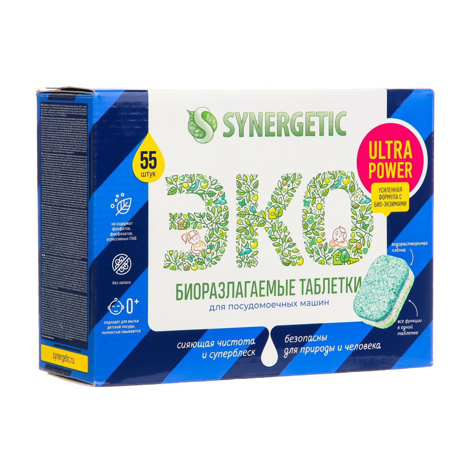 Купить Таблетки для посудомоечных машин Synergetic Ultra power бесфосфатные, биоразлагаемые, 55 шт