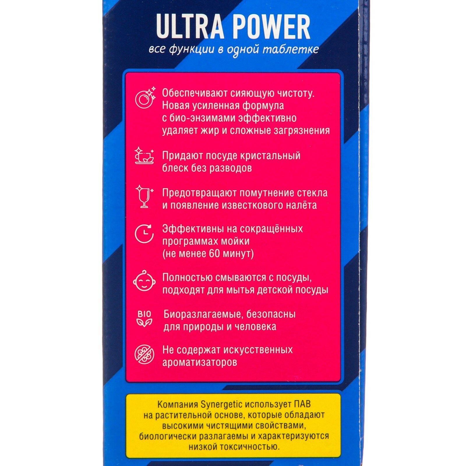 Таблетки для посудомоечных машин SYNERGETIC ULTRA POWER 100 шт, без запаха, бесфосфатные, биоразлагаемые, усиленная формула с био-энзимами