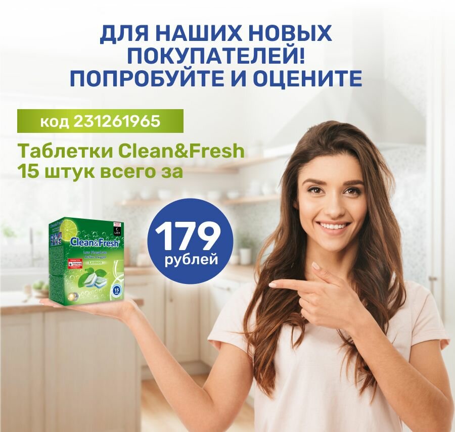 Таблетки для посудомоечной машины "Clean&Fresh" Всё в 1 / 15 штук / капсулы для посудомоечных машин, не растворимая оболочка