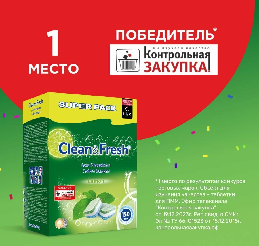 СохранитьТаблетки для посудомоечных машин 150 шт., CLEAN&FRESH ALL-IN-1, Cd13150 интересное: