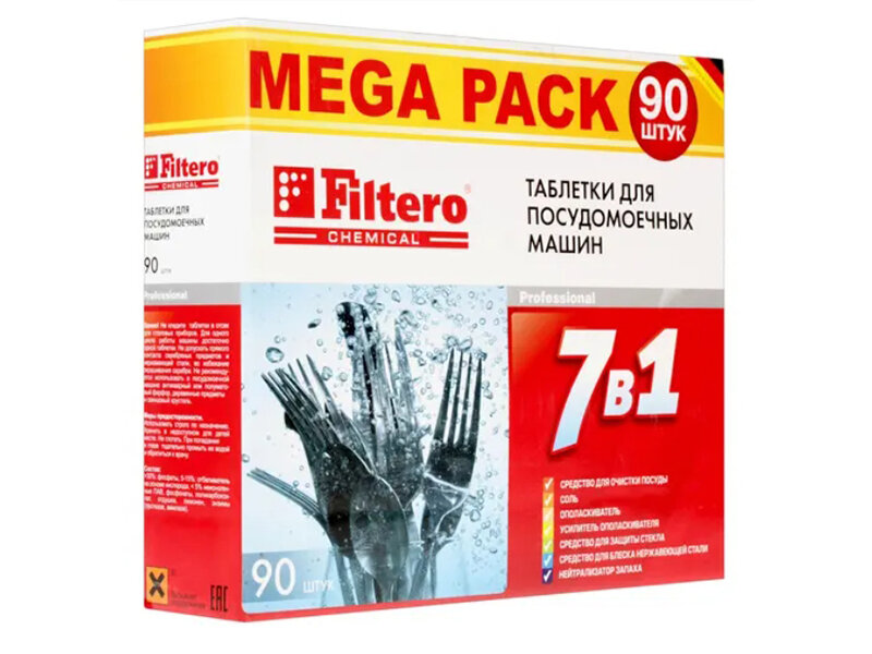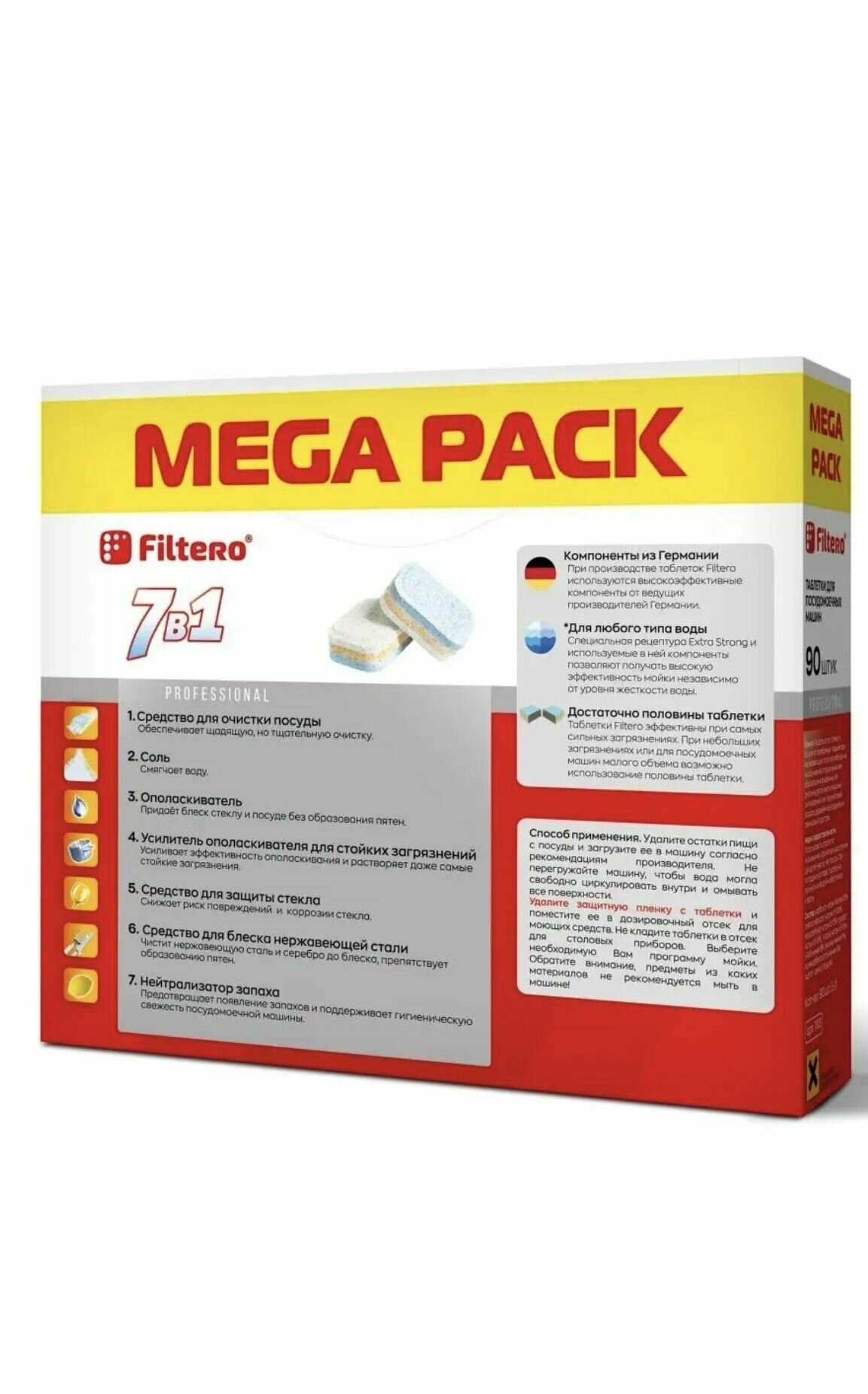 Таблетки Filtero для посудомоечных машин 7 в 1, 90 штук, арт, 703, MEGA PACK, средство для ПММ
