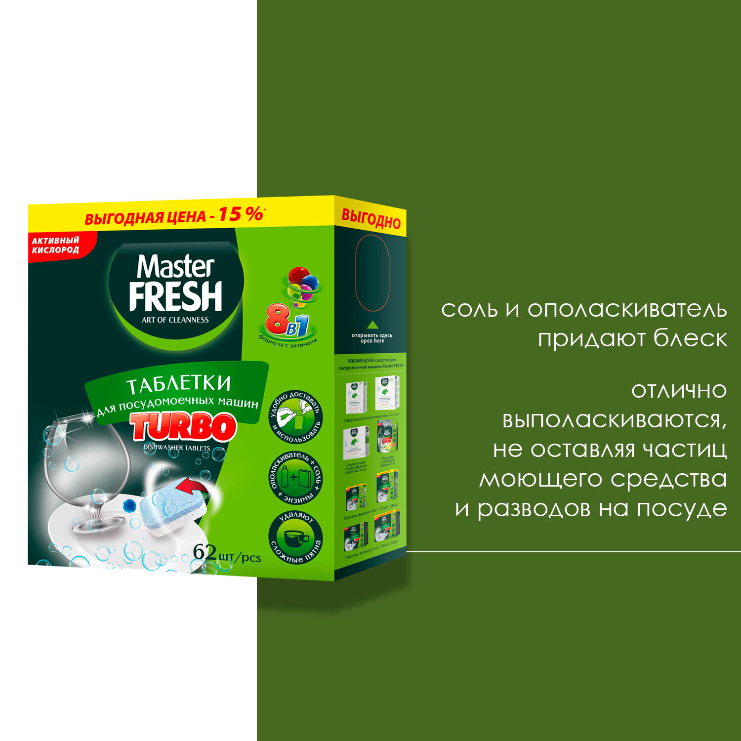 Купить Таблетки для посудомоечных машин Master Fresh TURBO 8в1 в нерастворимой оболочке, 62 шт