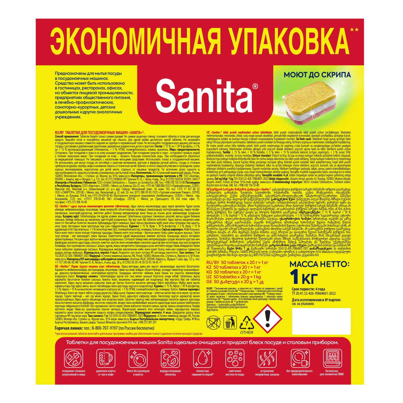 | Назначение | для мытья посуды / для придания блеска / для стекла / для устранения запаха |