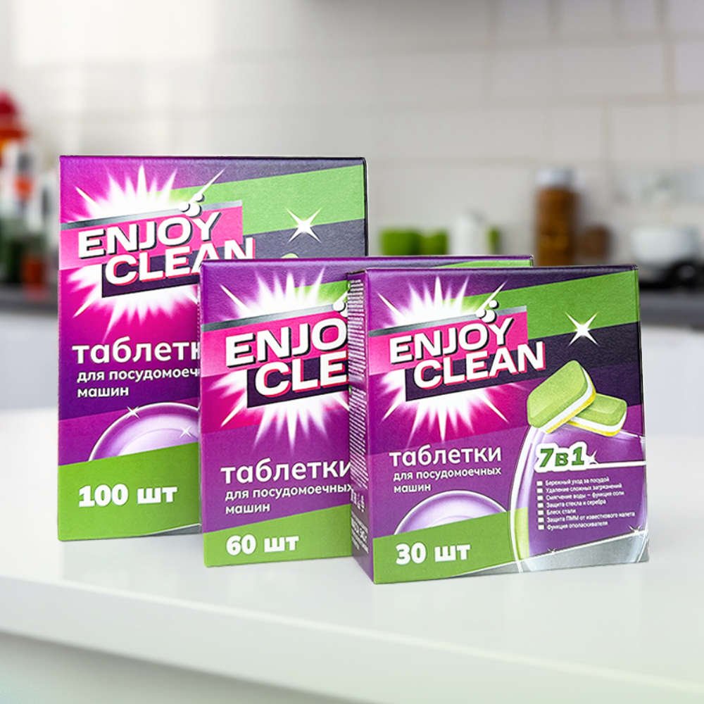 Таблетки с энзимами для посудомоечных машин Enjoy Clean "7 in 1" 540 г. 30 шт. Таблетки для посудомойки