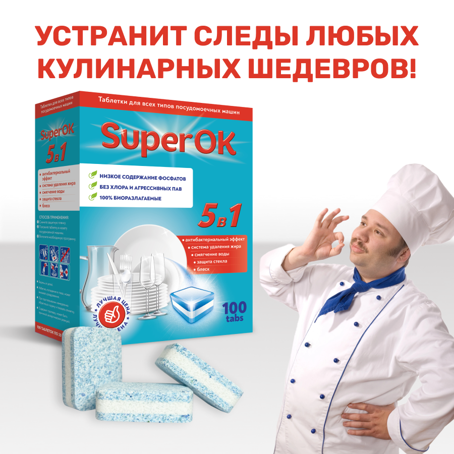 Ниже Вы можете прочитать отзывы на Таблетки для посудомоечной машины SuperOK 5в1 / 100 шт., ознакомится с подробными характеристиками, посмотреть интересные обзоры и фотографии на Таблетки для посудомоечной машины SuperOK 5в1 / 100 шт..