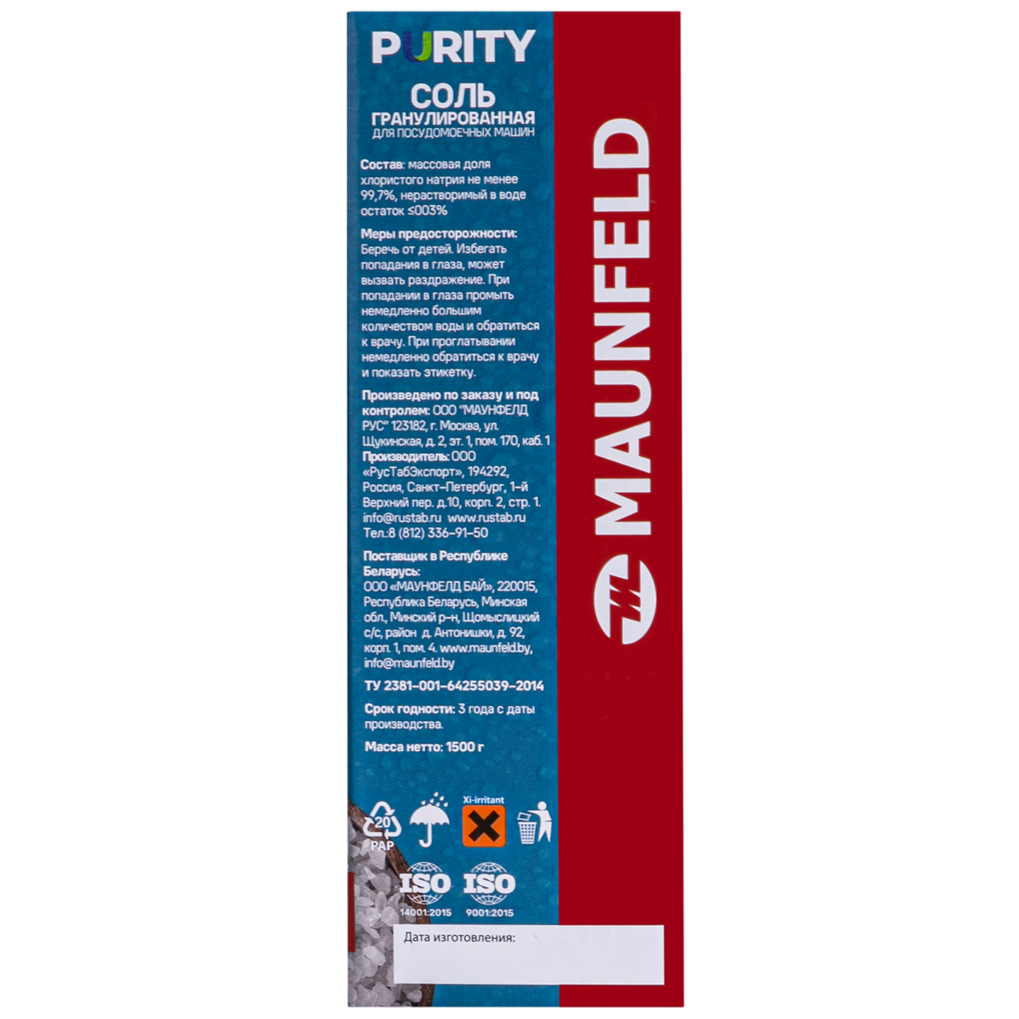 Купить Соль для посудомоечных машин MAUNFELD Purity MDS1500G (1500 г)
