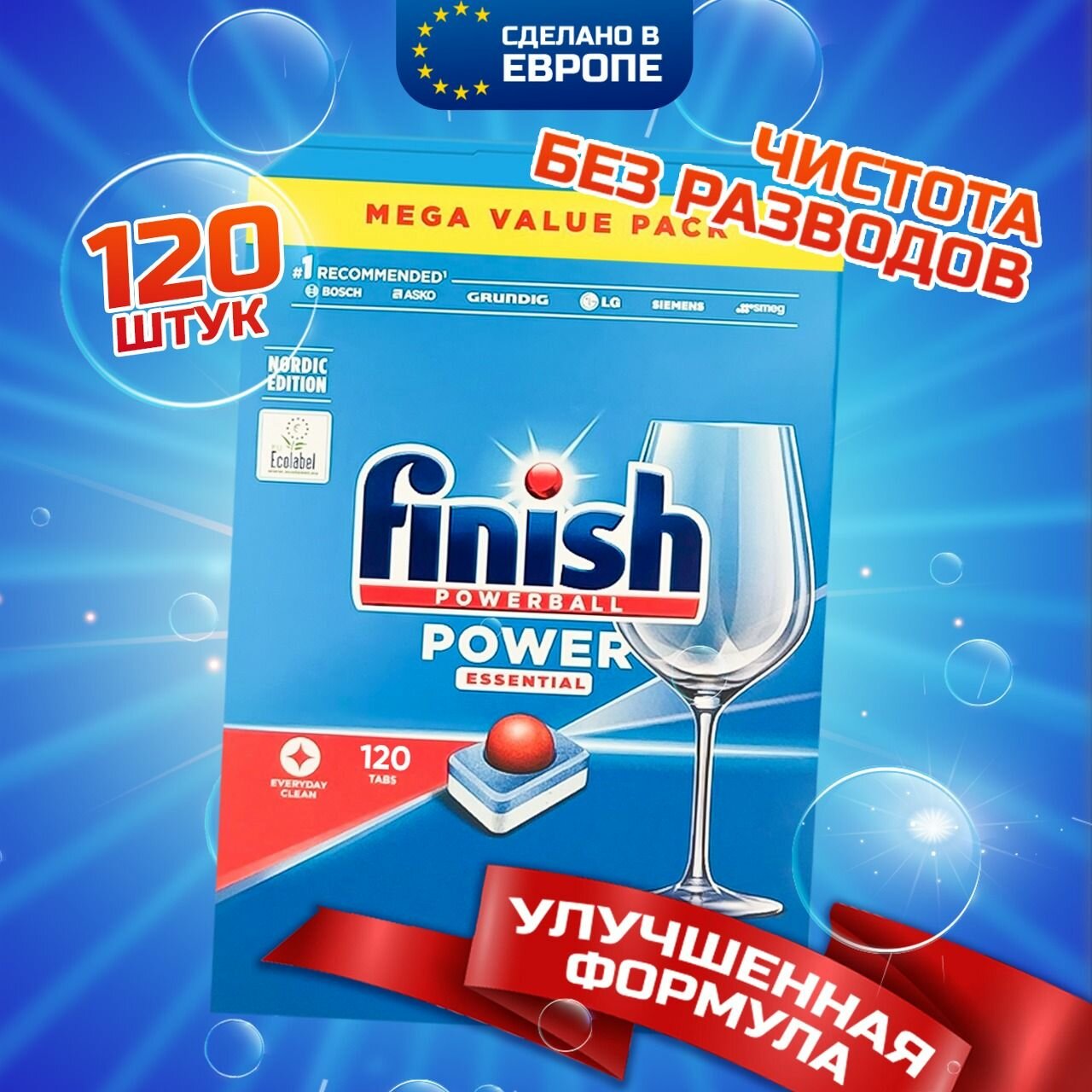 Таблетки финиш для посудомоечной машины из Финляндии (Finish Powerball Essential 120 шт)