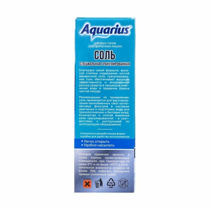 Соль для посудомоечных машин "Aquarius" гранулированная 1800 г интересное:
