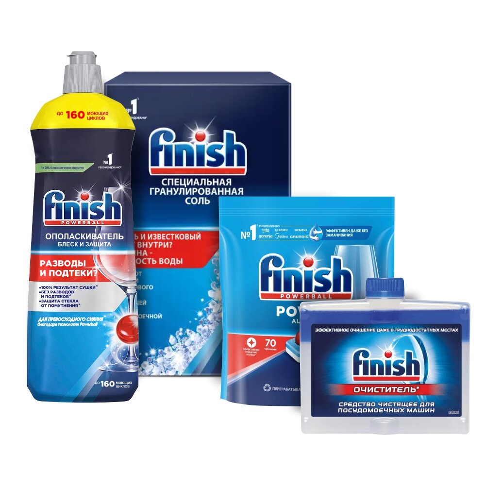 Набор средств для ПММ FINISH Чистящее средство + Соль + Таблетки 70 шт. + Ополаскиватель интересное: