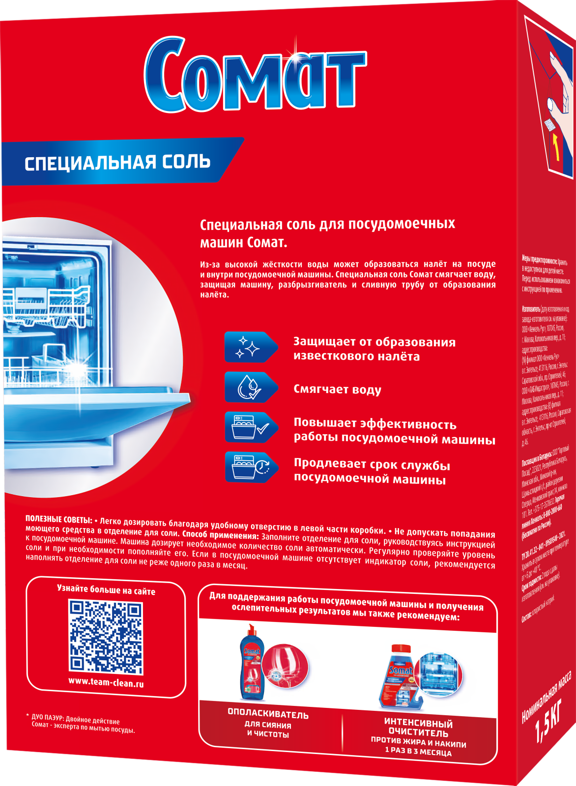 Соль для посудомоечных машин Somat Salt, 1,5 кг интересное: