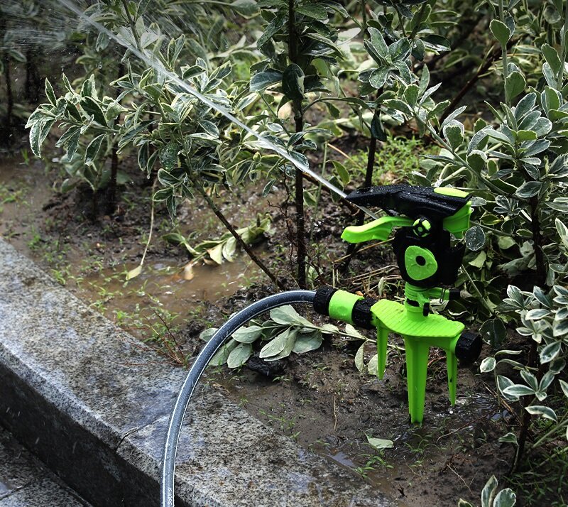Дождеватель-разбрызгиватель импульсный на 3-х пиках Deli DL581302 площадь орошения до 380кв.м, сектор полива 0-360 град, ударопрочный пластик