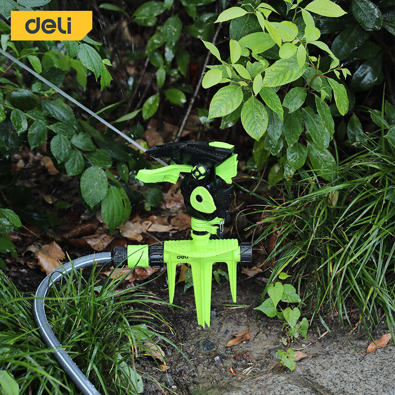 Купить DELI Дождеватель-разбрызгиватель импульсный на 3-х пиках DL581302 площадь орошения до 380кв.м сектор полива 30-360 град ударопрочный пластик 133776