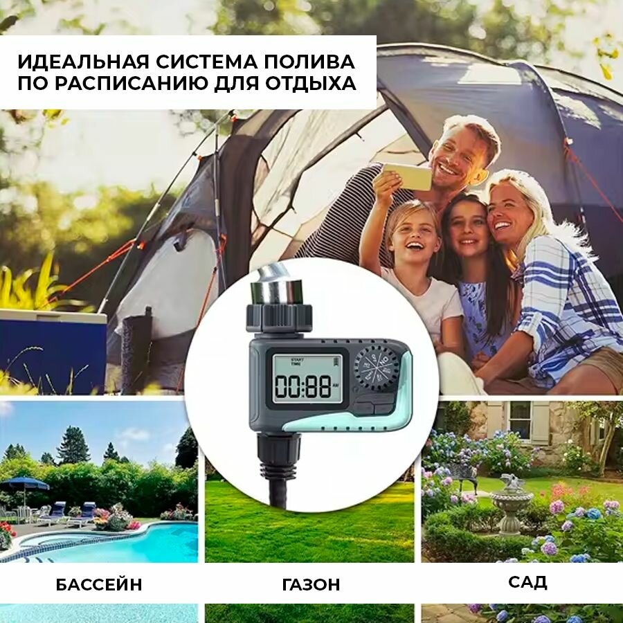 Таймер для автополива электронный, интеллектуальный контроллер автоматического полива с ЖК-дисплеем водонепроницаемый интересное: