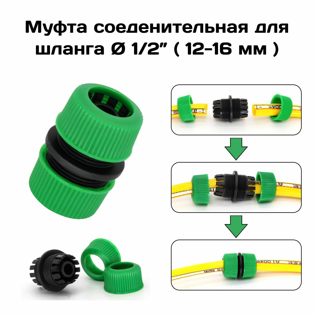 Муфта соединительная для шланга 1/2 дюйма(12-16 мм), переходная ремонтная муфта для садового, поливочного шланга. интересное: