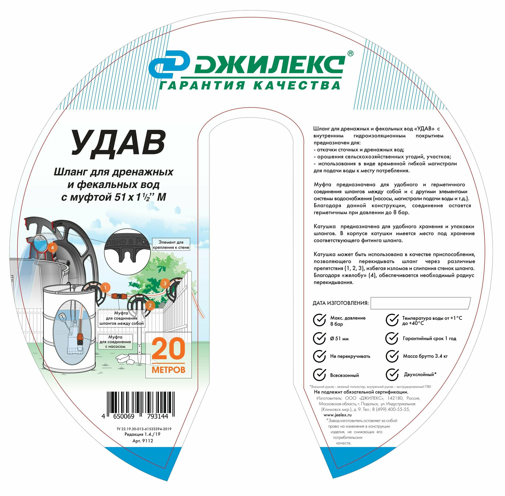 Шланг 40х1 1/2'' М "Удав" ДЖИЛЕКС 9111 интересное: