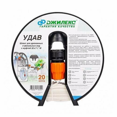 Шланг Джилекс удав 32х1 1/2 дюйма М для дренажных и фекальных насосов