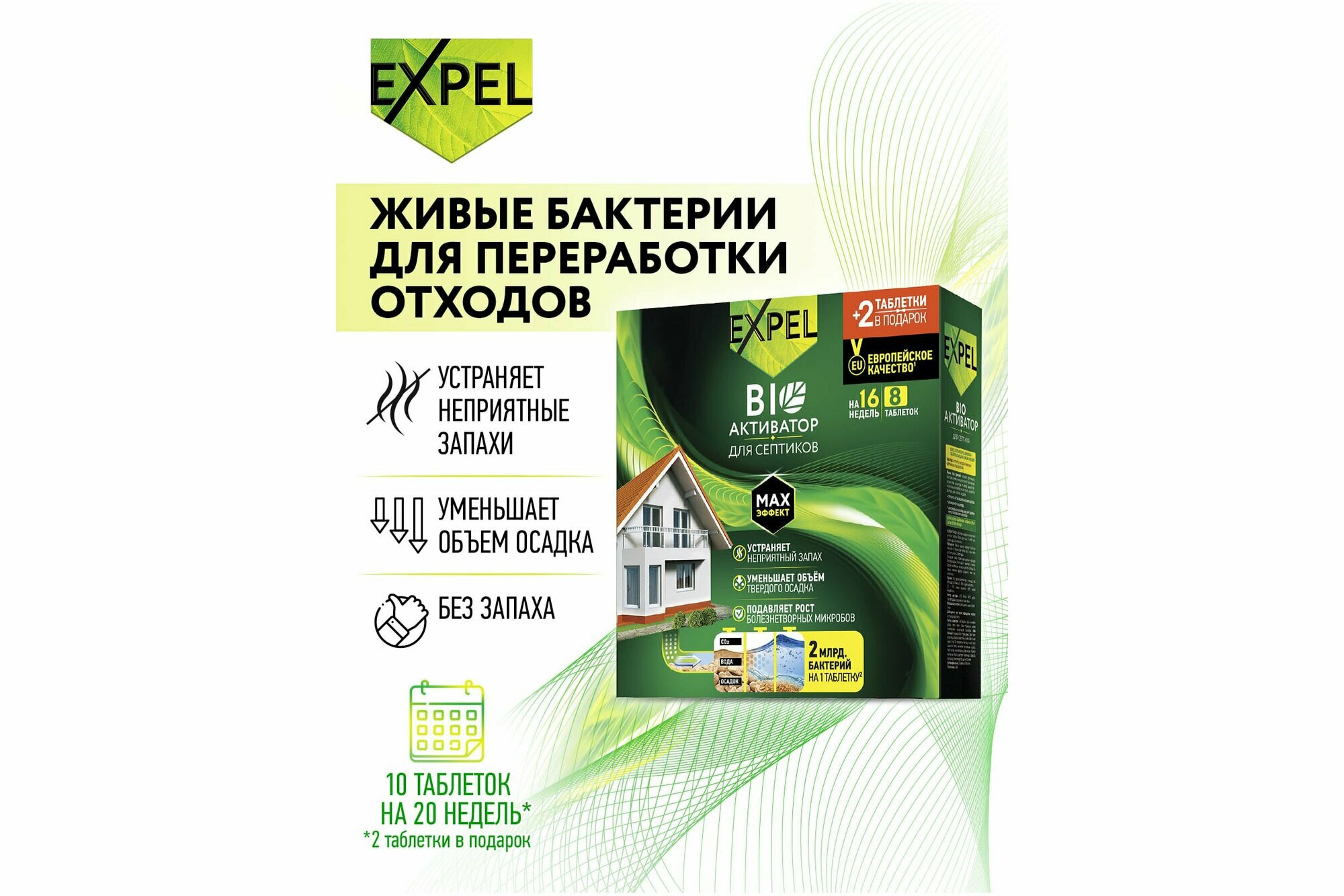 Бактерии для септиков и выгребных ям, биоактиватор, средство для дачного туалета Expel, 10 таблеток