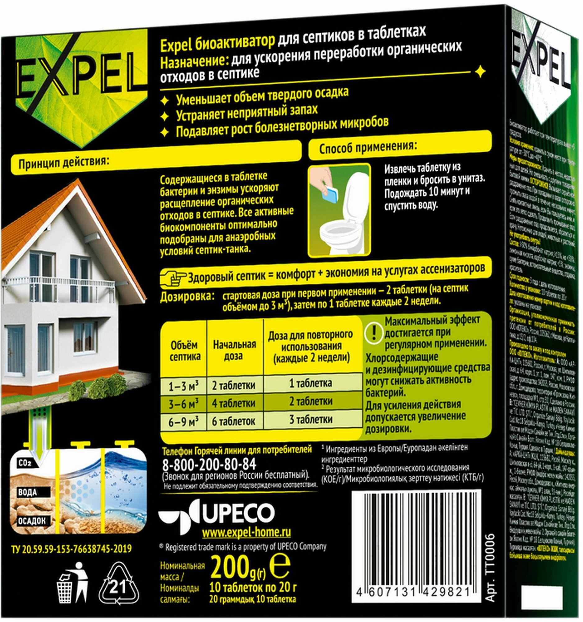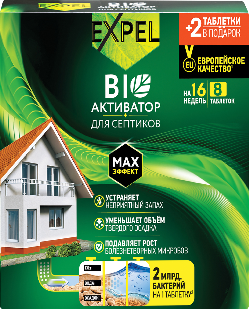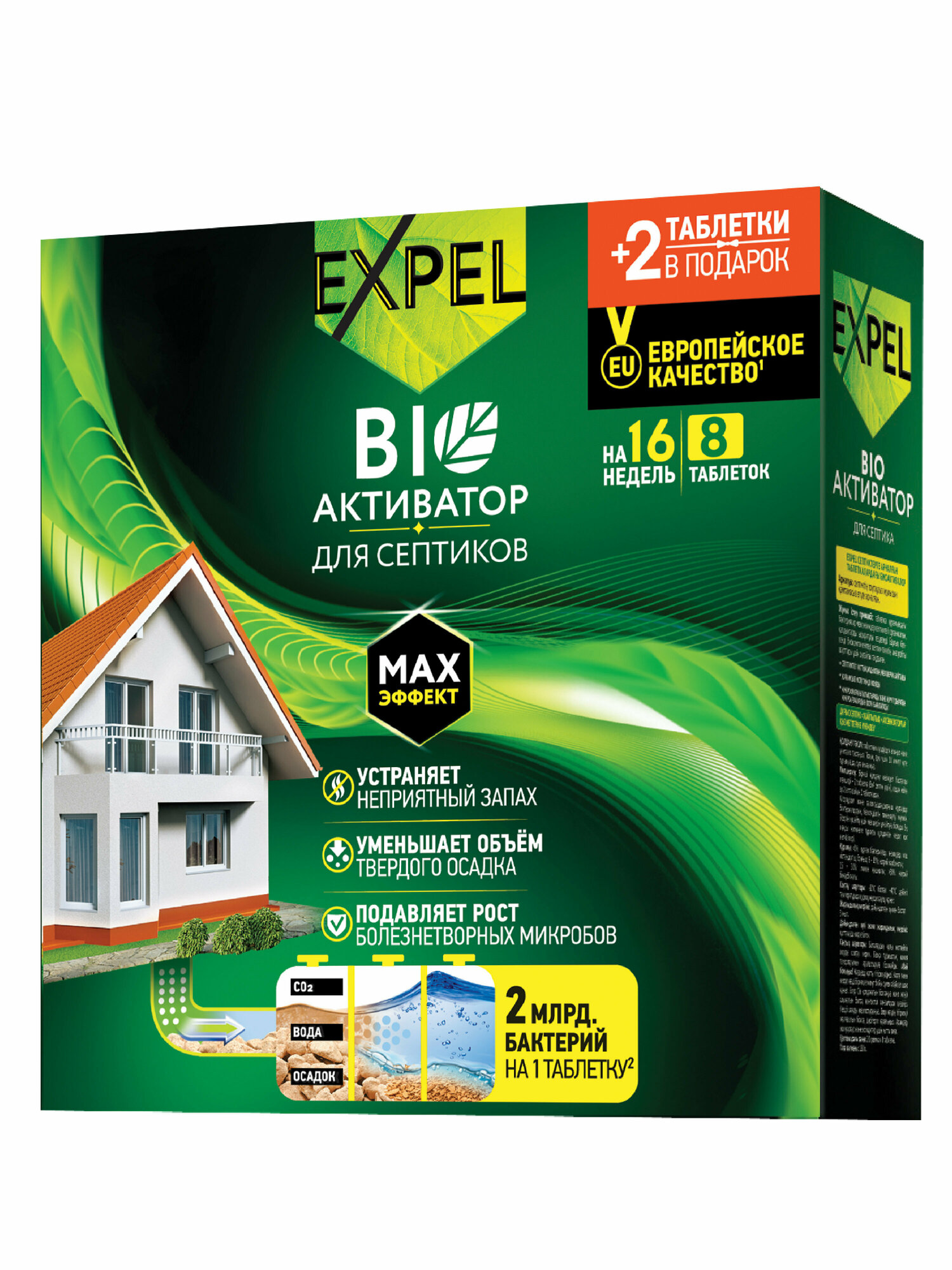 Биоактиватор для септиков и выгребных ям, Бактерии, средство для дачного туалета Expel, 10 таблеток