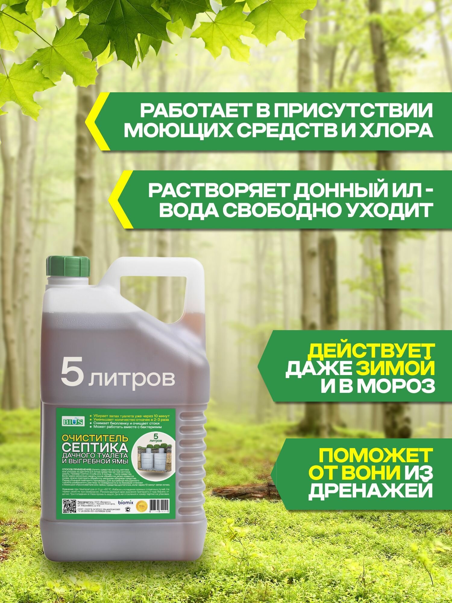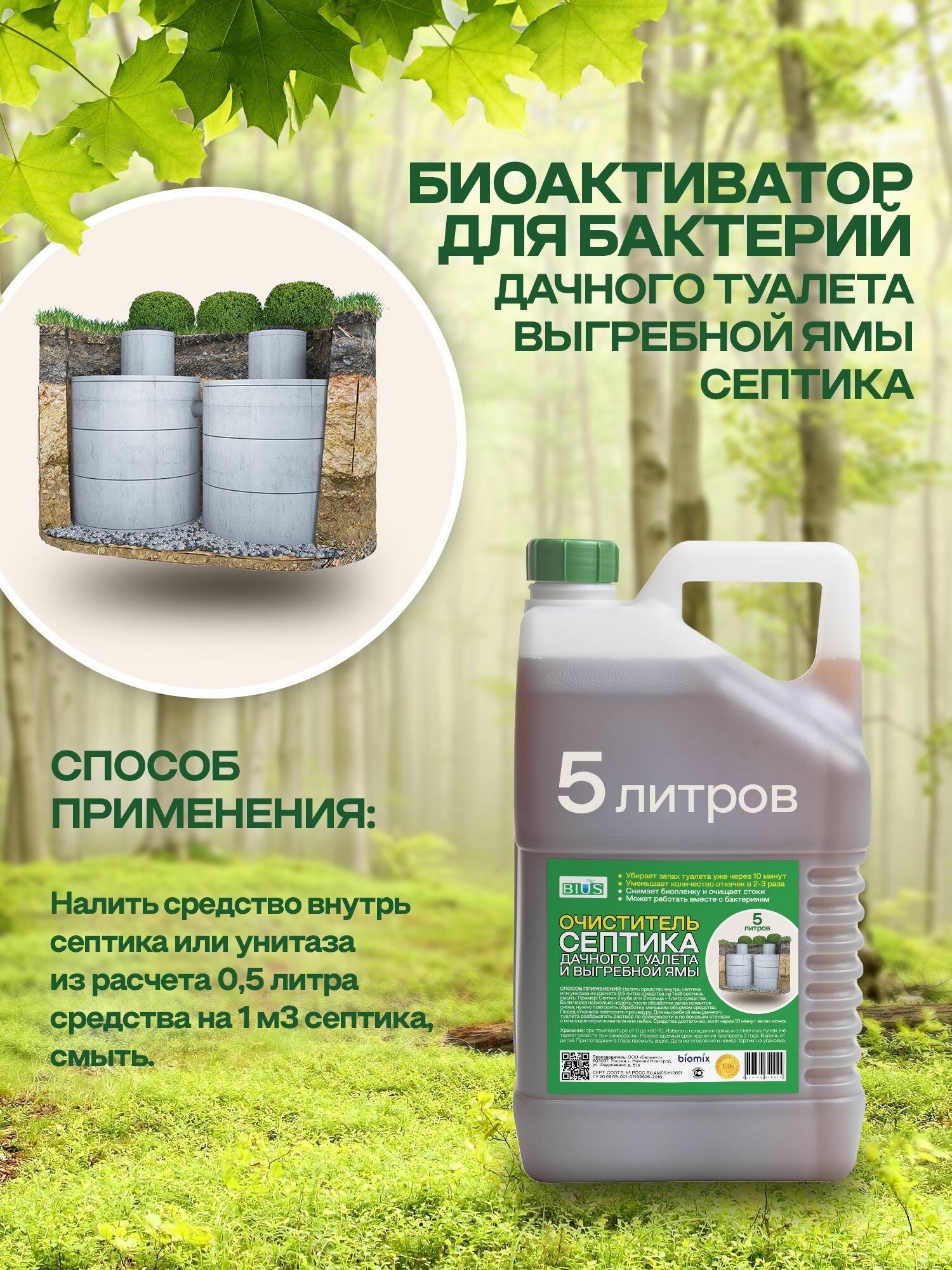 Средство для септиков и колец УБП Биус 5л / Биоактиватор для бактерий, выгребных ям и дачных туалетов интересное: