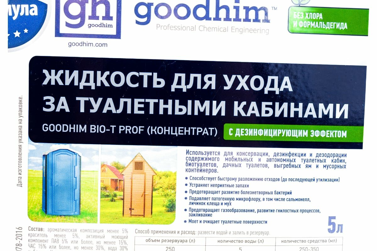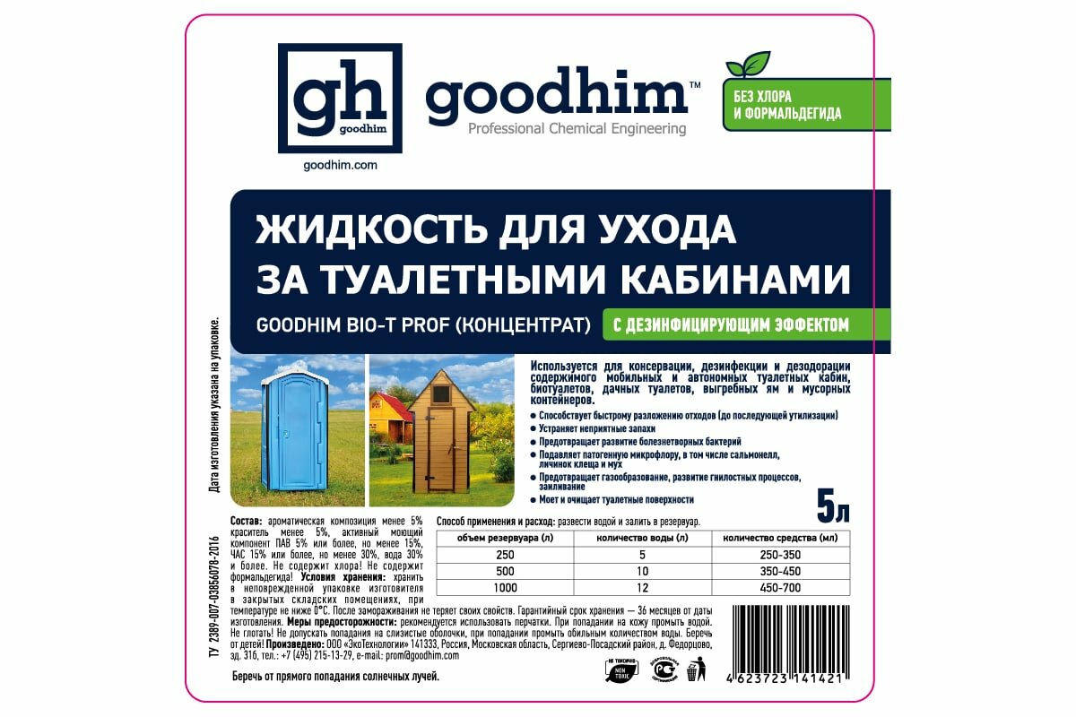 Жидкость по уходу за туалетными кабинами Goodhim BIO-T PROF интересное: