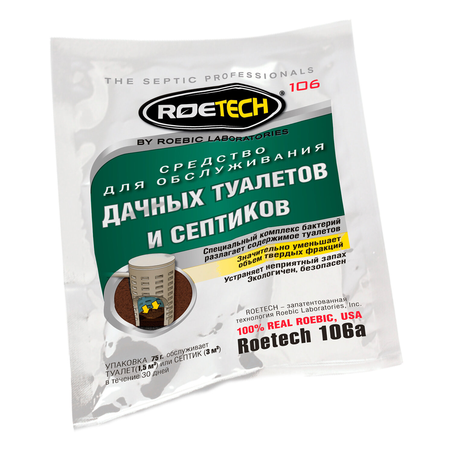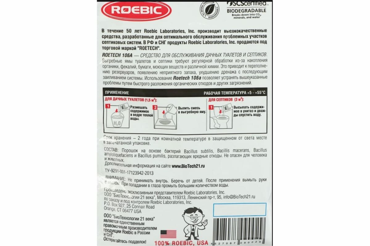 | Дополнительная информация | Средство ROETECH для обслуживания дачных туалетов и септиков 75г |