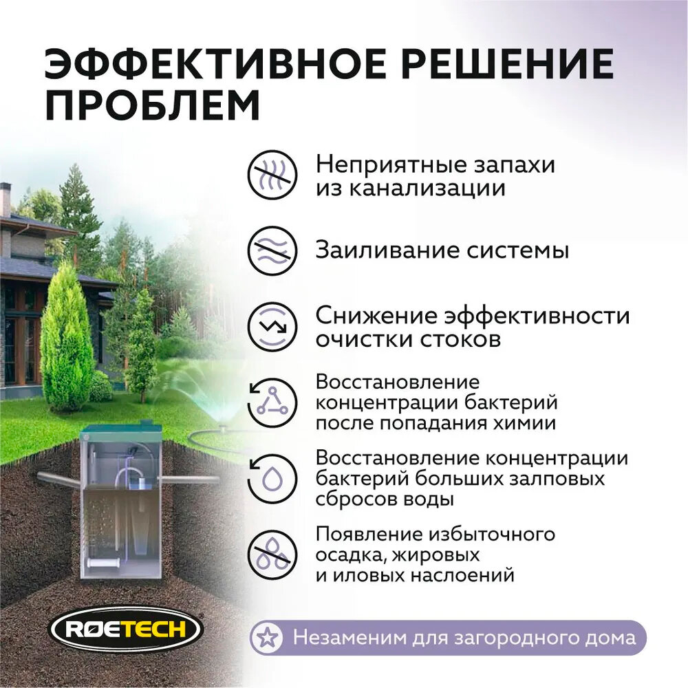 Средство для обслуживания дачных туалетов и септиков ROETECH (пакет 75г) интересное: