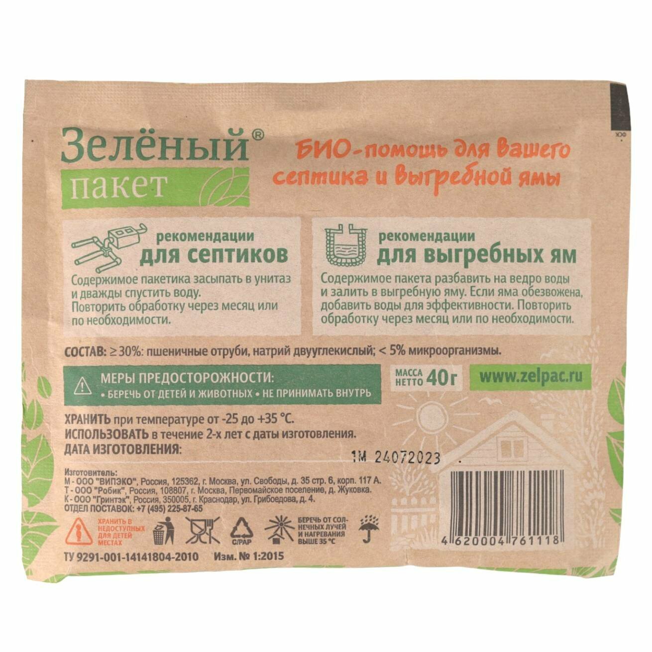 Средство для дачных туалетов Зеленый пакет на 2 мес., 30 г 7993246