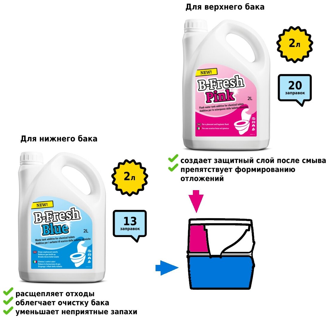 | Дополнительная информация | туалетная жидкость B-Fresh Blue 2 л, туалетная жидкость B-Fresh Pink, 2 л |