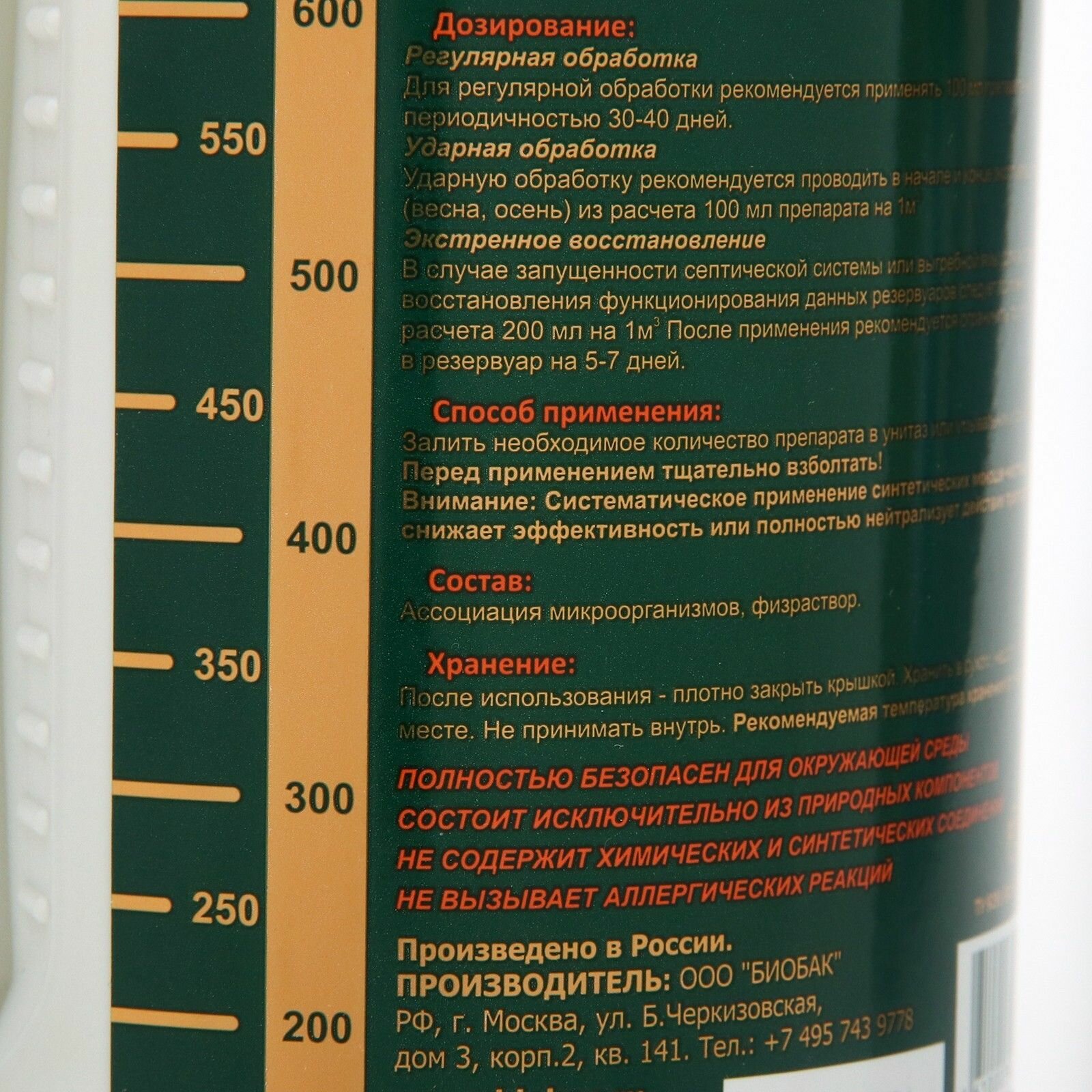 | Дополнительная информация | 100 мл. препарата рассчитано на переработку 3м³ резервуара с периодичностью 30-40 дней |