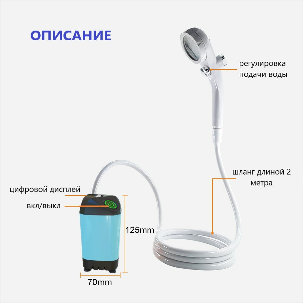Душ походный с насосом, встроенным термометром, аккумулятором на 4800 мАч и цифровым дисплеем