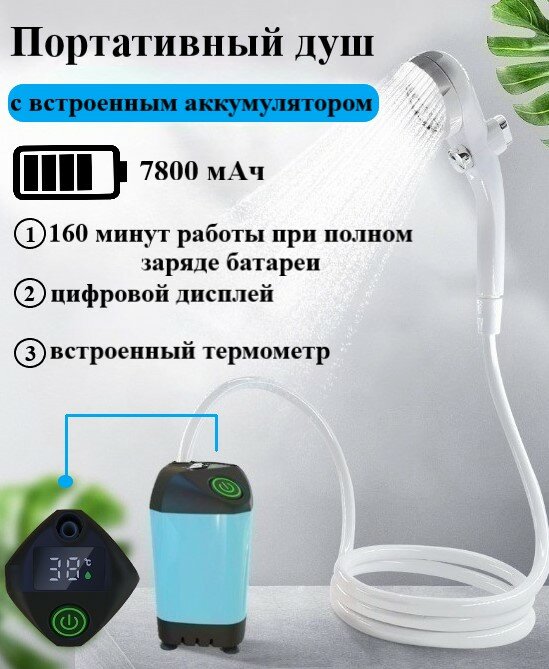 Душ походный с насосом, встроенным термометром, аккумулятором на 7800 мАч и цифровым дисплеем интересное: