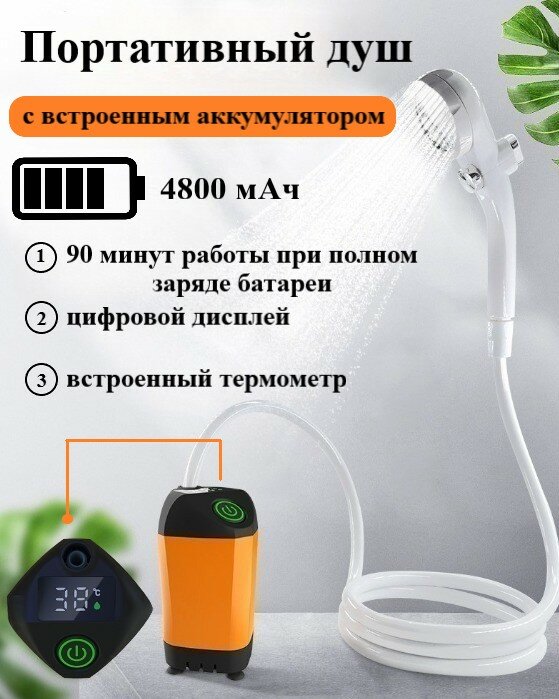 Душ походный с насосом, встроенным термометром, аккумулятором на 4800 мАч и цифровым дисплеем интересное: