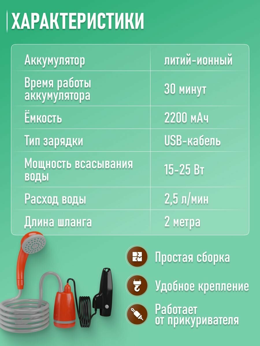 Портативный душ с насосом для дачи и туризма, аккумуляторный