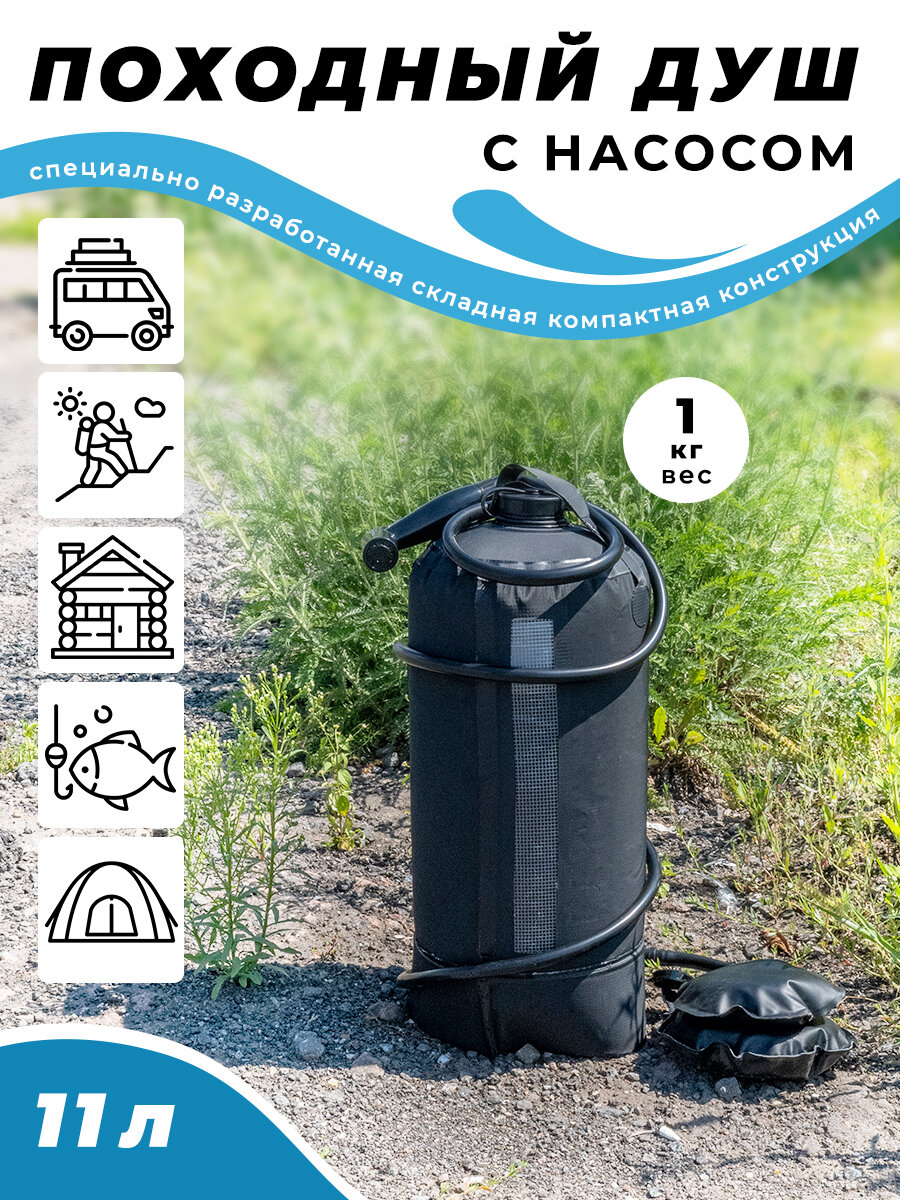 Переносной походный душ для дачи и туризма 11 литров с насосом интересное: