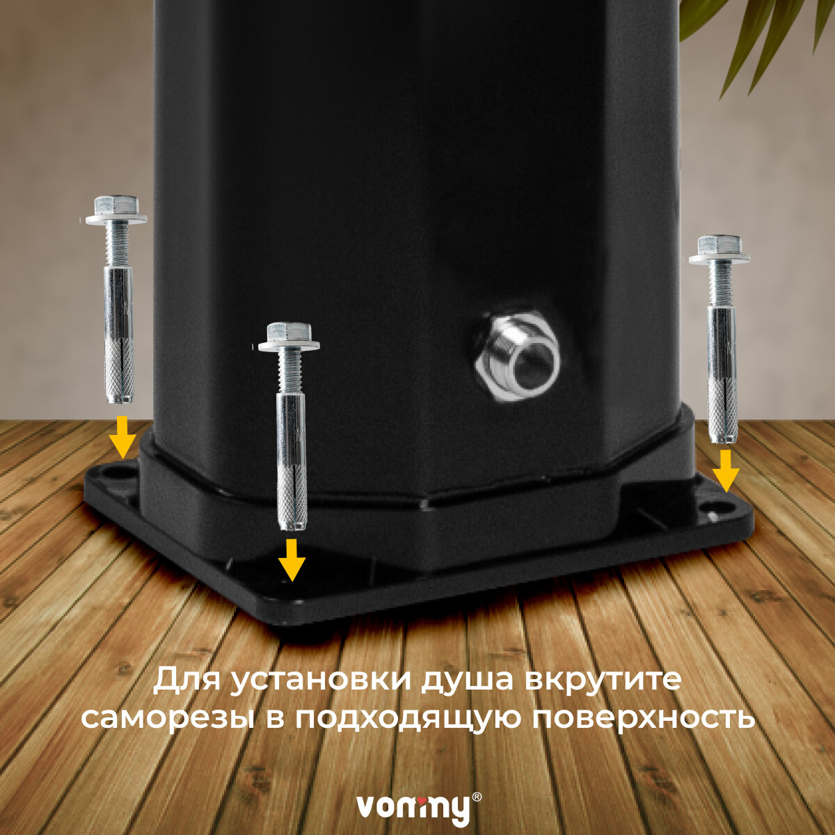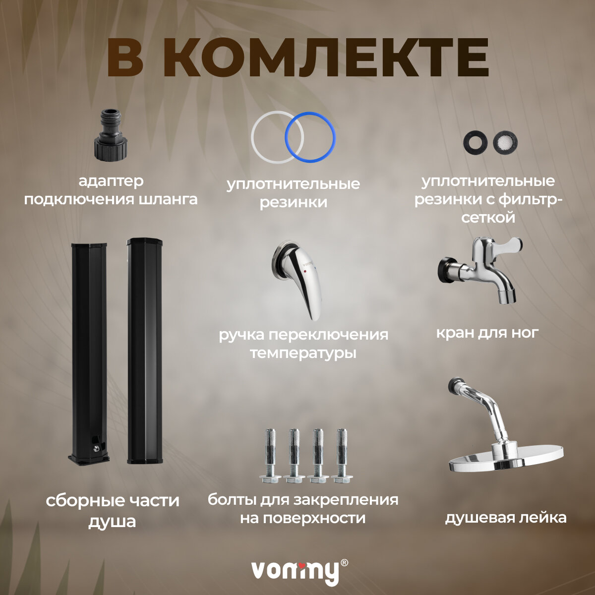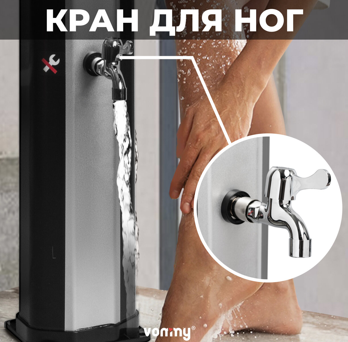 Солнечный уличный летний душ с подогревом от солнца Vommy. Объем 35 л, с краном для ног и большой лейкой для дачи интересное: