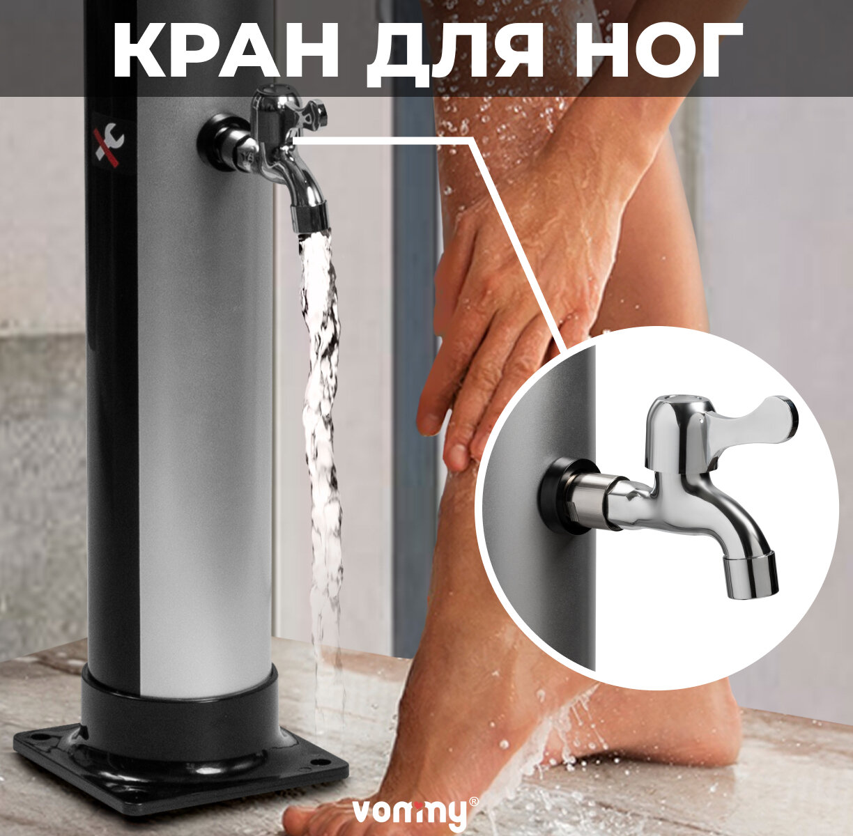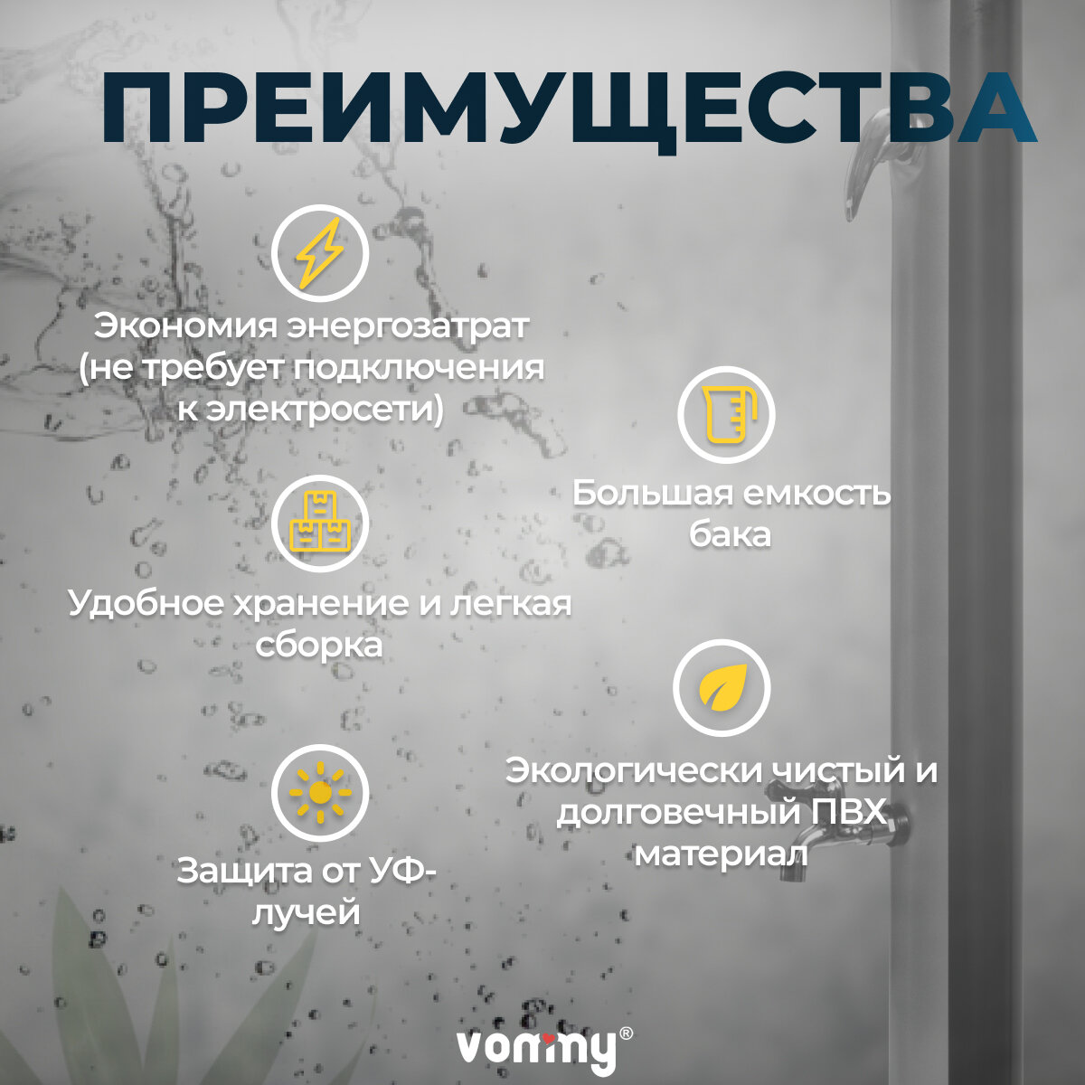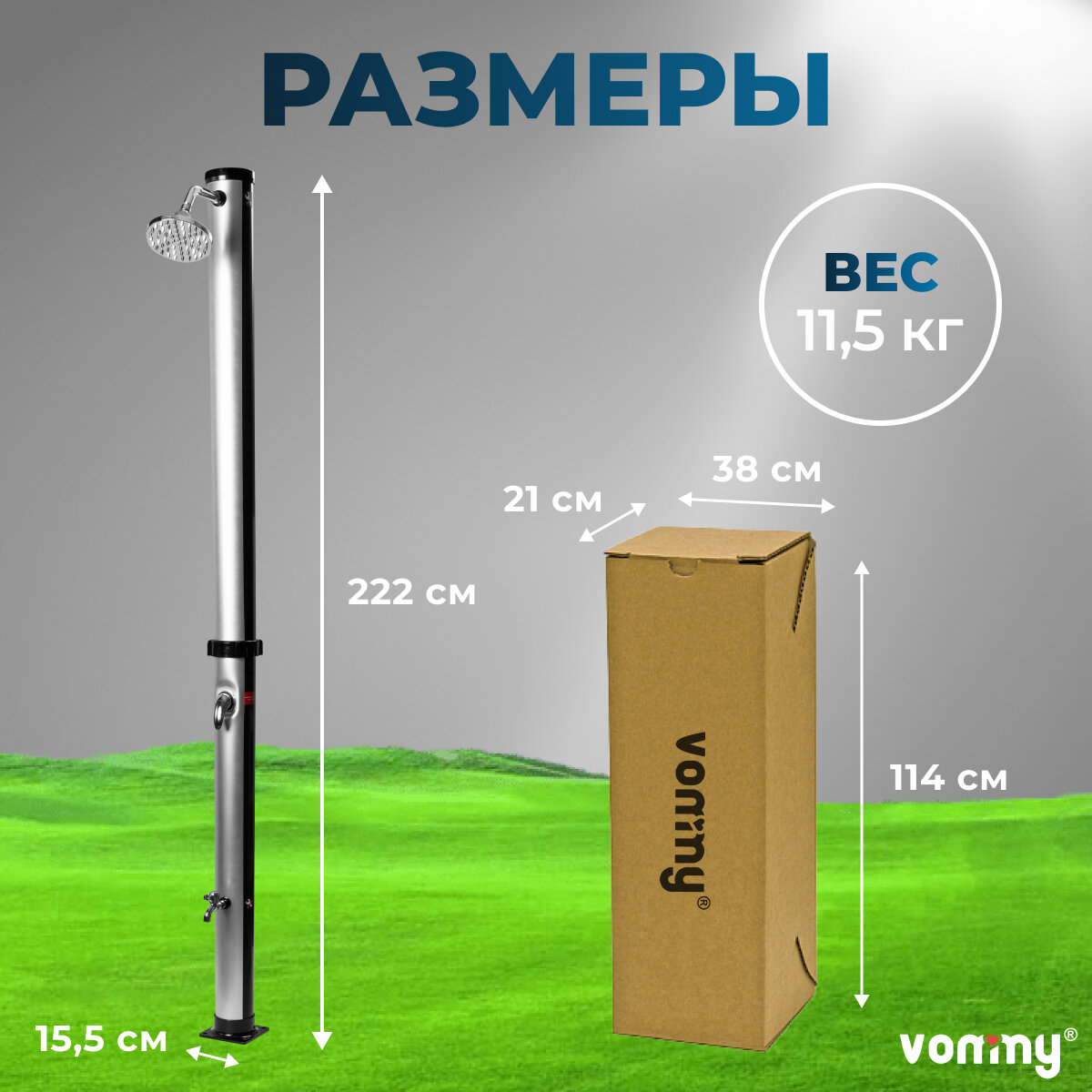 Солнечный уличный летний душ с подогревом от солнца Vommy. Объем 20 л, с краном для ног и большой лейкой для дачи интересное: