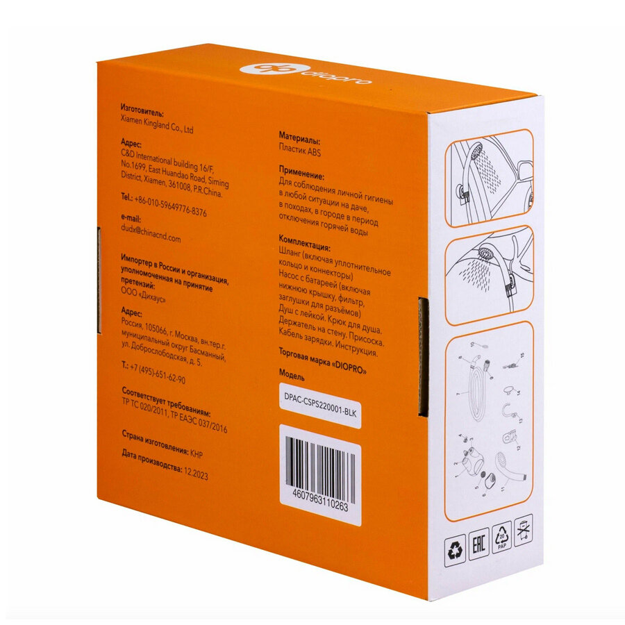 Купить Портативный душ DIOPRO со встроенной батареей и насосом