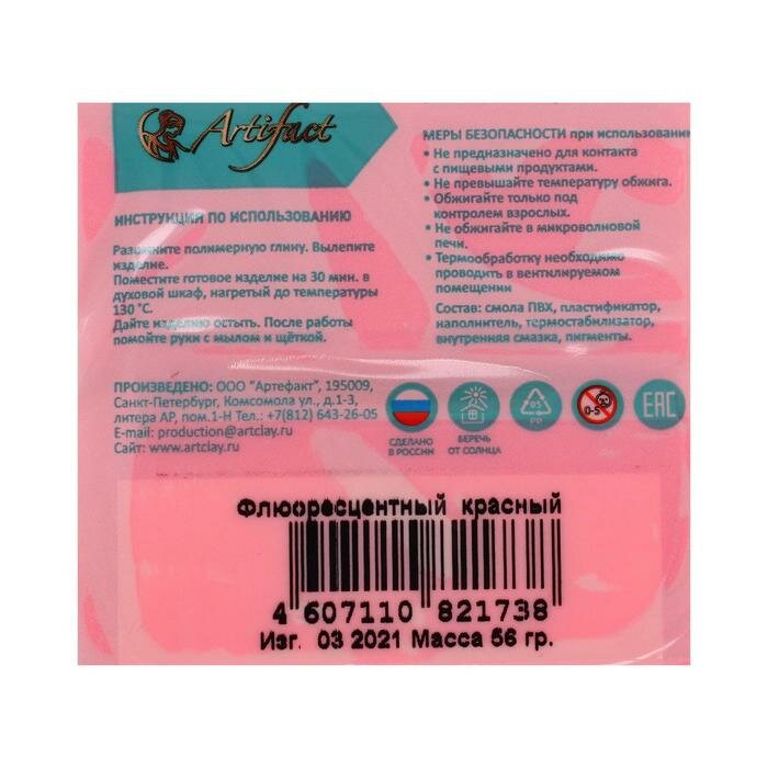 Artifact Пластика - полимерная глина 56г флуоресцентный Красный интересное: