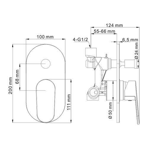 Смеситель для ванны и душа со встроенной системой монтажа WasserKRAFT Donau 5361