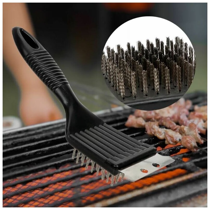Щетка для чистки гриля 20,5см., цвет черный / Щетка-скребок для гриля, барбекю интересное: