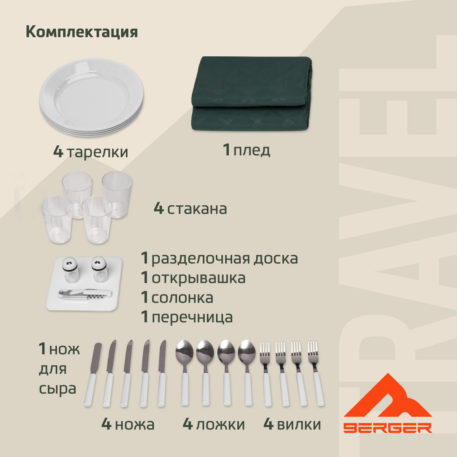Набор для пикника Berger Travel Go-Out 4 BTGO24PS-01, зеленый интересное: